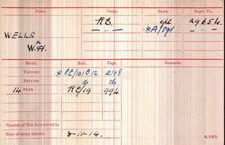 William had two younger brothers: Thomas Wells (1896-) and Robert Wells (1899-1908). Thomas also served in the Great War as a Private in the Royal Army Medical Corps.