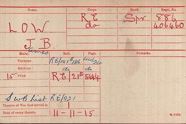 8. Medal Index Card of 406460 Sapper James B. Low, R.E.