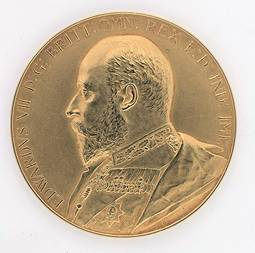 The King’s Medal in Figure 3 bears a portrait bust of King Edward VII wearing the uniform of a General Officer.[5] The recipient's name is engraved around the rim. The medal was awarded to the Officer Cadet who gained the highest scores in military, practical and academic studies at Woolwich. The Pollock Medal was a prize awarded to the best cadet of the season, in commemoration of Sir George Pollock's exploits in Afghanistan, first at the East India Company's Military Seminary at Addiscombe, and later at the Royal Military Academy, Woolwich.[6]