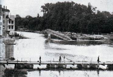 Figure 8. Damaged Bridge and Pontoon Bridge at Pont Arcy Where Lieutenant Miller was Killed