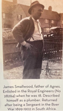 The Smallwood family, like so many other families in the U.K. during the Great War of 1914-1918, provided more than one son to fight for King and Country. In addition to James, one of his brothers served in the Canadian Engineers. A second brother attempted to enlist in the Australian Imperial Forces but was rejected for service. During World War 2 this brother lied about his age and was successful in enlisting in the Australian Military Forces Militia.[1]